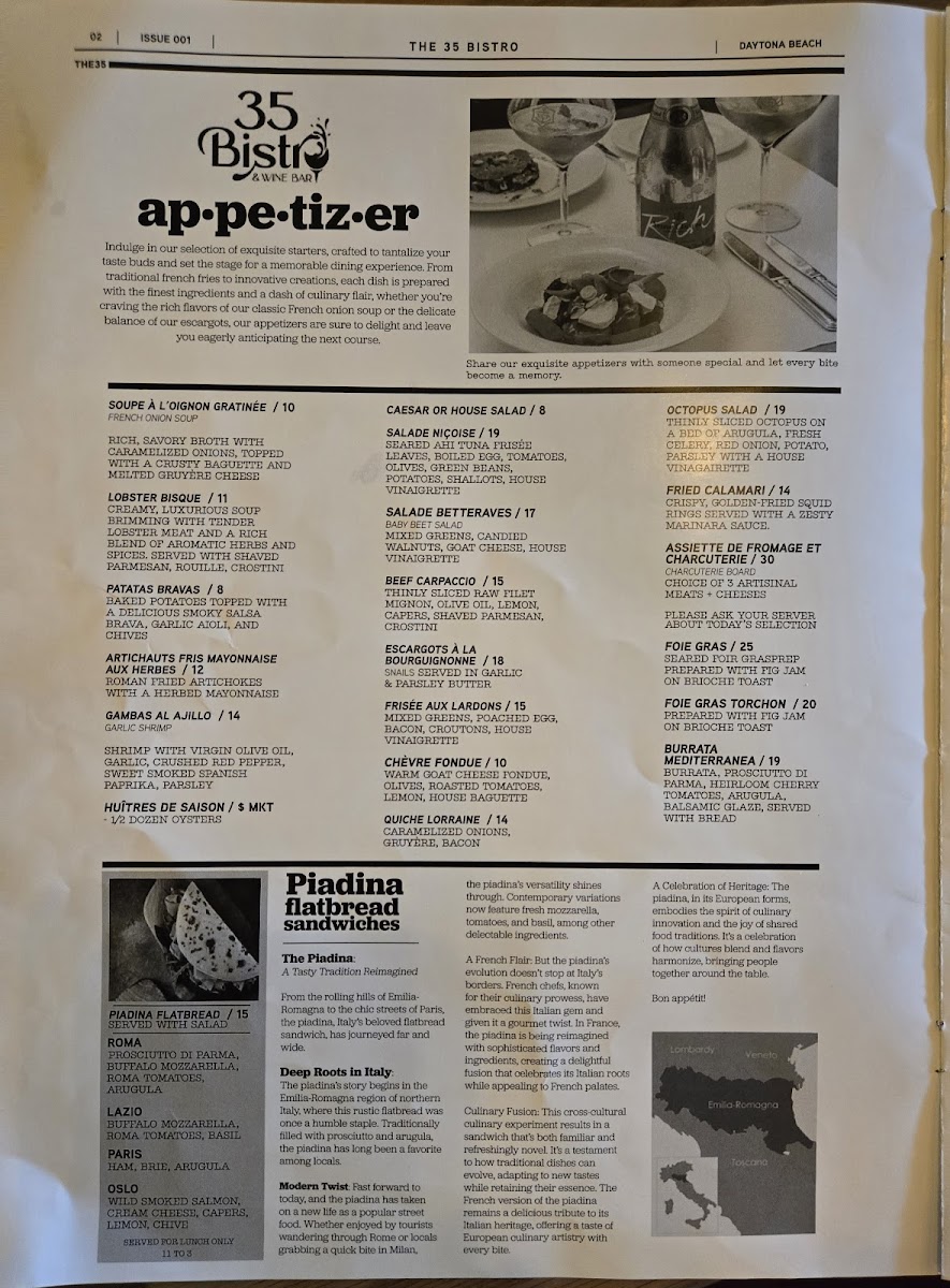 Welcome to 35 Bistro and Wine Bar, a delightful culinary gem located at 740 Main St, Daytona Beach, FL. This charming establishment evokes the authentic flavors of France right in the heart of Daytona. With every dish meticulously crafted from fresh ingredients, 35 Bistro offers a true taste of French cuisine that has left patrons raving about their dining experiences.